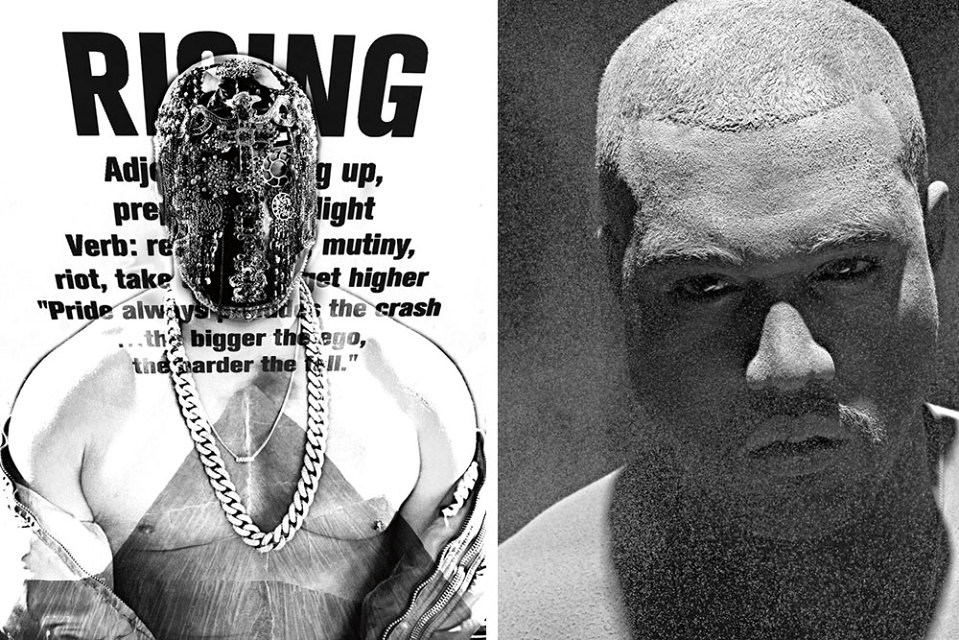 WEST: Yeah! So I just had to throw it all in the trash. I had to not follow any of the rules because there was no way to match up to the previous album. Dark Fantasy was the first time you heard that collection of sonic paintings in that way. So I had to completely destroy the landscape and start with a new story. Dark Fantasy was the fifth installment of a collection that included the four albums before it. It’s kind of the “Luke, I am your father” moment. Yeezus, though, was the beginning of me as a new kind of artist. Stepping forward with what I know about architecture, about classicism, about society, about texture, about synesthesia—the ability to see sound—and the way everything is everything and all these things combine, and then starting from scratch with Yeezus … That’s one of the reasons why I didn’t want to use the same formula of starting the album with a track like “Blood on the Leaves,” and having that Nina Simone sample up front that would bring everyone in, using postmodern creativity where you kind of lean on something that people are familiar with and comfortable with to get their attention. I actually think the most uncomfortable sound on Yeezus is the sound that the album starts with, which is the new version of what would have been called radio static. It’s the sonic version of what internet static would be—that’s how I would describe that opening. It’s Daft Punk sound. It was just like that moment of being in a restaurant and ripping the tablecloth out from under all the glasses. That’s what “On Sight” does sonically.”