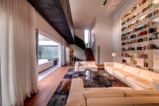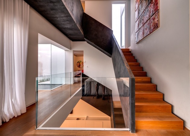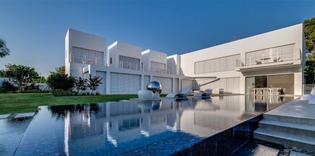 Designed by Nestor Sandbank, The Cubes House is located in Ramot Hashavim, Israel. “The Cubes House is a new concept in modern architecture , the functions are built as independent cubes : children rooms , and connected to the main house (bigger cube) by a transparent corridor.”
