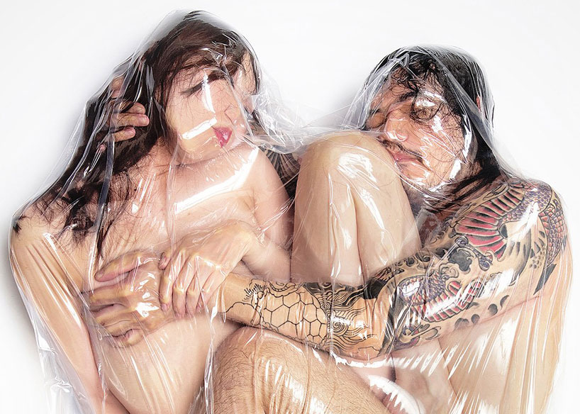 “Japanese photographer Hal Seals an intimate pair in futon vacuum bags and captures their image in an instant of time. His latest series of ‘flesh love’ photos has been snapped for condo mania shop in Tokyo, cleverly playing on the idea of a tightly encased object — referenced from the aesthetics of a condom — and the notion of preserving the twosome’s love forever.”