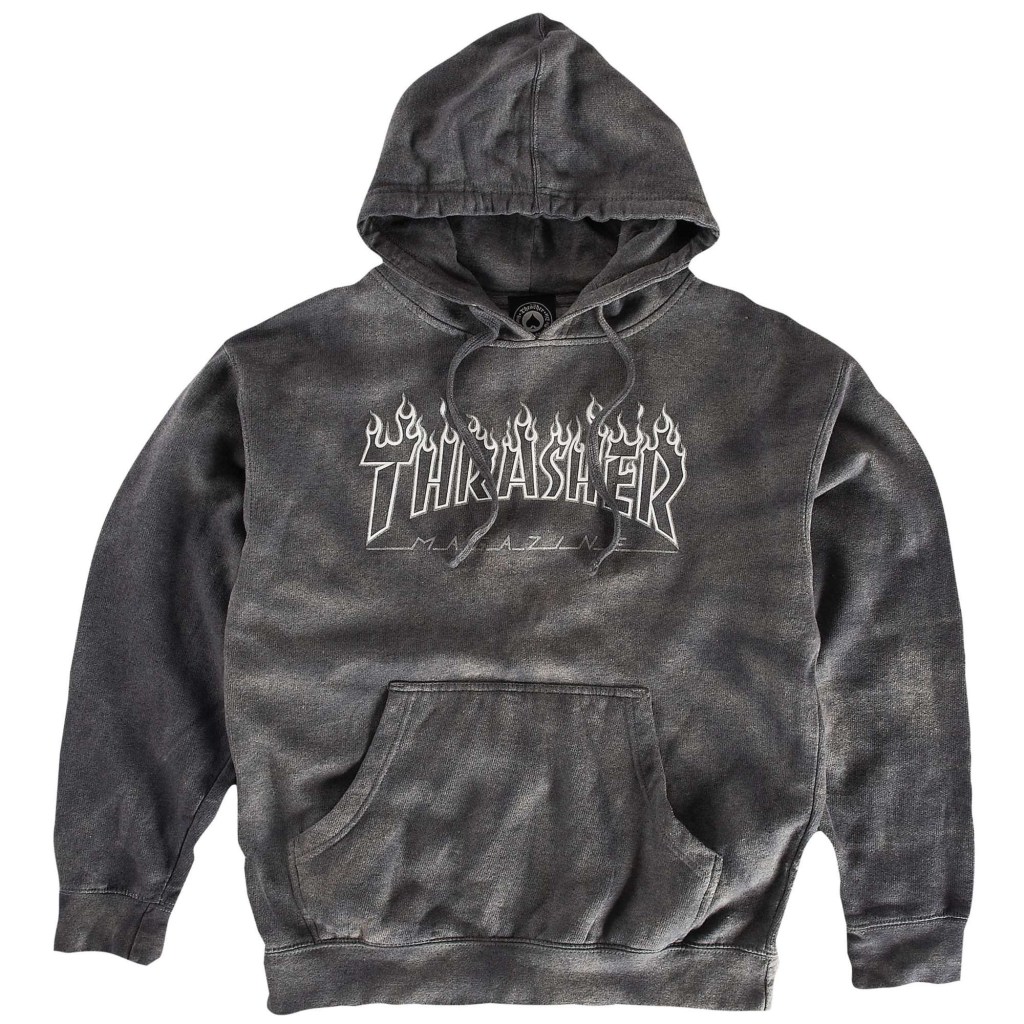 Thrasher’s silver flame hoodie features metallic silver details, a front pouch pocket and is made of 90% cotton/10% polyester. Get the comfortable and stylish pullover sweatshirt here!