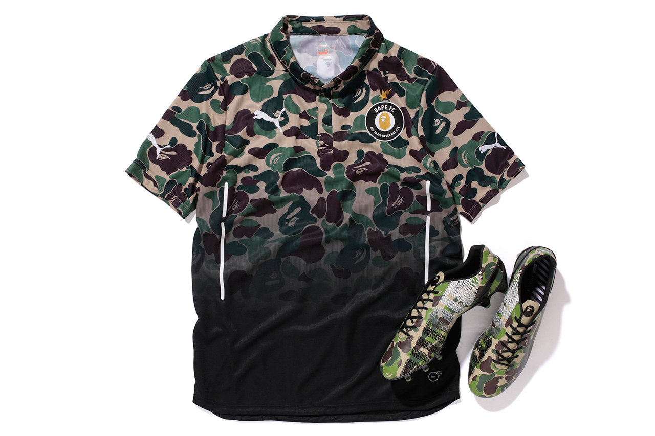 A Bathing Ape x PUMA’s “BAPE F.C.” collection will be available only at BAPEXCLUSIVE Aoyama July 12.
