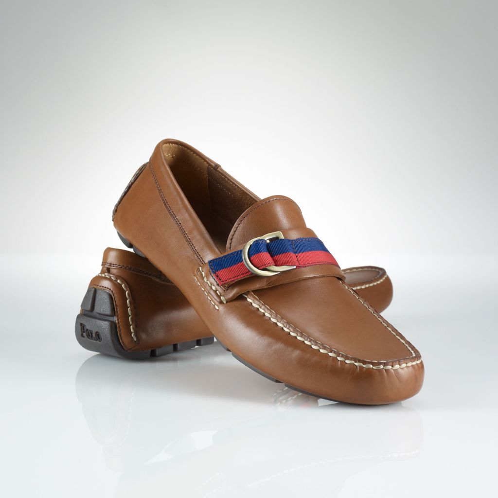 This preppy loafer is crafted from burnished calfskin, featuring a buckled grosgrain-ribbon detail, rubber detailing at the sole and heel, double-needle-stitched details at the upper and imported leather. Shop the Terry Driver here.
