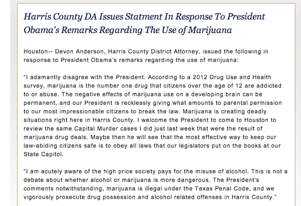 Looks like the Houston’s District Attorney’s race is heating up right in time before election season is underway. In this year’s upcoming election, November 4, 2014, Houston’s current District Attorney Devon Anderson will defending her seat against Democratic candidate Kim Ogg. In recent news, Kim Ogg has voiced her opinion about petty marijuana laws used to throw thousands of Houston citizens in jail each year. According to reports, Kim Ogg wants to ticket and force community service upon those who violate small marijuana offenses, rather than arrest and jail violators.