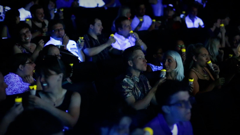 Leading in contemporary food design, London-based creative duo Bompas & Parr brightens up movie snacks with their recent project, ‘Glow-in-the-Dark Cornetto.’ According to Design Boom, “The popular ice cream cone radiates a yellow glow and, when licked, leaves the treat tester with florescent features.” Check out the footage below, as the cornetto is given to visitors at the ‘End of the World’ premiere at Leicester Square (London).