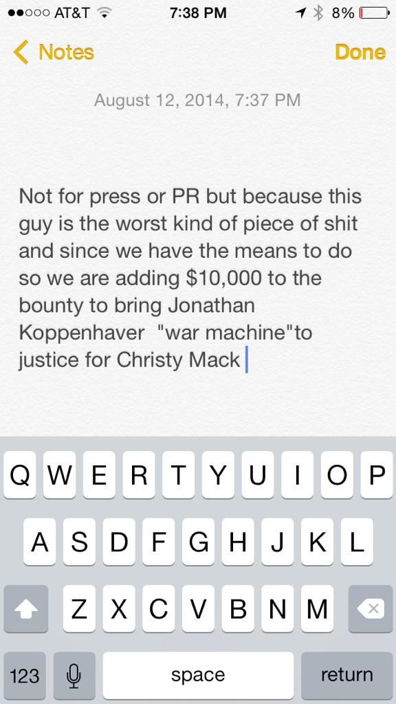 Jonathan Koppenhaver, “War Machine”,  might be the most cowardice man in America. In recent news, the MMA fighter has elapsed his time of turning himself in pending charges of assault on his girlfriend Christy Mack. According to LAD Bible, War Machine broke 18 of Christy’s facial bones and left her with a ruptured kidney. If that wasn’t enough, it’s also noted that War Machine butchered Christy Mack’s hair with a knife!