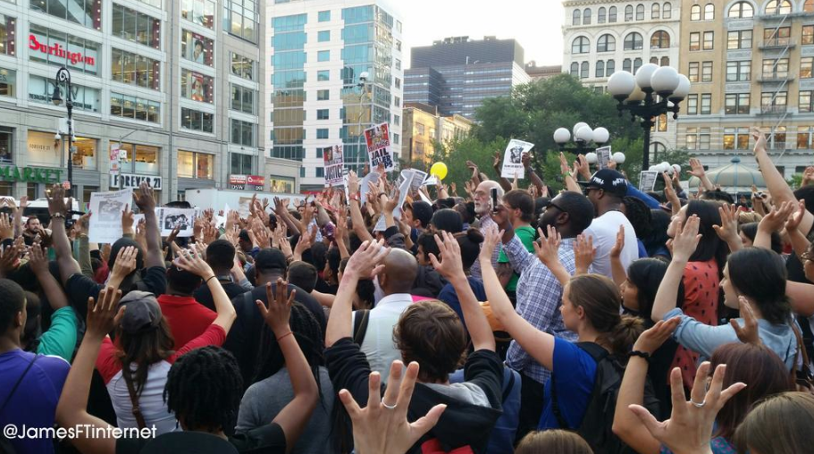 Just when many people thought racially divided tensions were growing in the United States, a positive light was shone yesterday across major cities when thousands of Americans came out to support Mike Brown. Some of these major cities included St. Louis, Houston, and New York. From morning through nightfall, citizens hit the streets of their respective communities for a “Hands Up Don’t Shoot” rally. The rally was to protest the latestt death of 18 year old Mike Brown. Take a look below and you’ll see different cultures coming together to help not one race, but one cause (human rights). Mike Brown’s situation isn’t a “white versus black” problem, this is a “right to life” problem being abused by local officials. Regardless of ones race, unarmed citizens should never have to die from officials who’s duty is to protect their city.