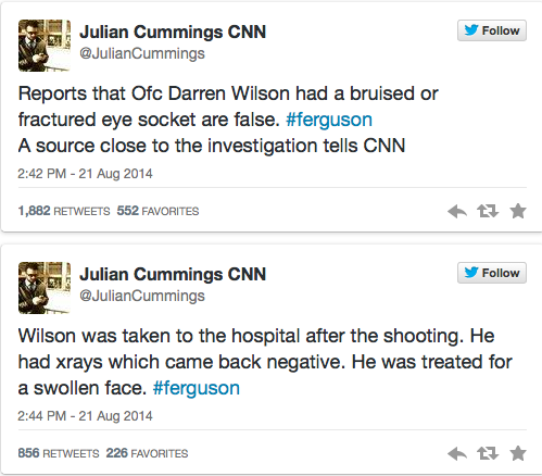 4) No medical report has confirmed that Darren Wilson received a fracture or eye socket injury as claimed by Wilson supporters.