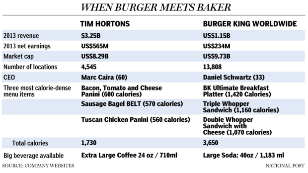 Burger King announced yesterday that it reached an agreement to purchase Canadian coffee/breakfast chain Tim Hortons Inc. for an estimated $11 BILLION!! This “inversion” is intended to give Burger King a stronger presence in the coffee and breakfast market in not only America, but in International markets around the world. This major move also means that the Burger King corporate headquarters will now operate in Canada, which will help lower Burger King’s taxes. As we have touched on major company inversions before with Walgreens; this deal has come under scrutiny from Congress & President Obama because of the future loss of tax revenue from the fast-food conglomerate. Burger King & Tim Hortons stated that the chains will continue to run independently and that Burger King will still operate out of Miami, Florida.