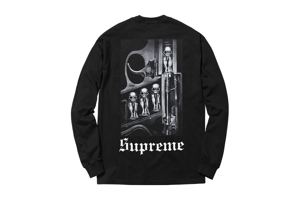 Inspired by Ridley Scott’s Alien, Supreme and Swiss artist H.R. Giger’s capsule collection is available now via Supreme’s website.