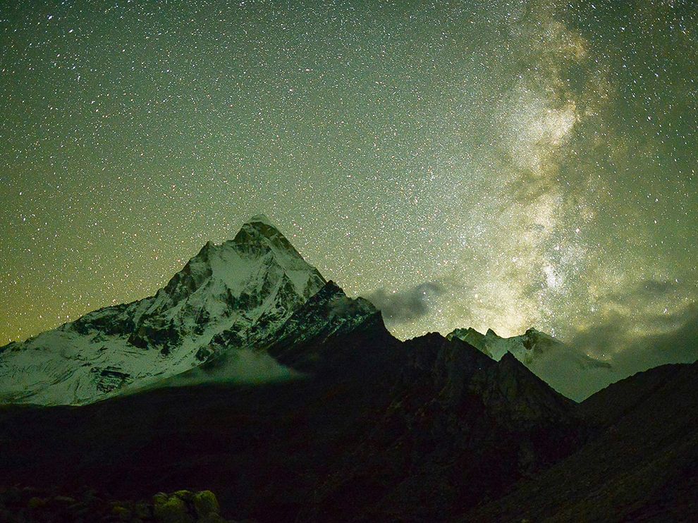 –At 21,467 feet, India’s Mount Shivling rises toward a clear night sky. Here in the Garhwal Himalaya lies the Gangotri glacier—and the headwaters of the Ganges Rive–Via National Geographic