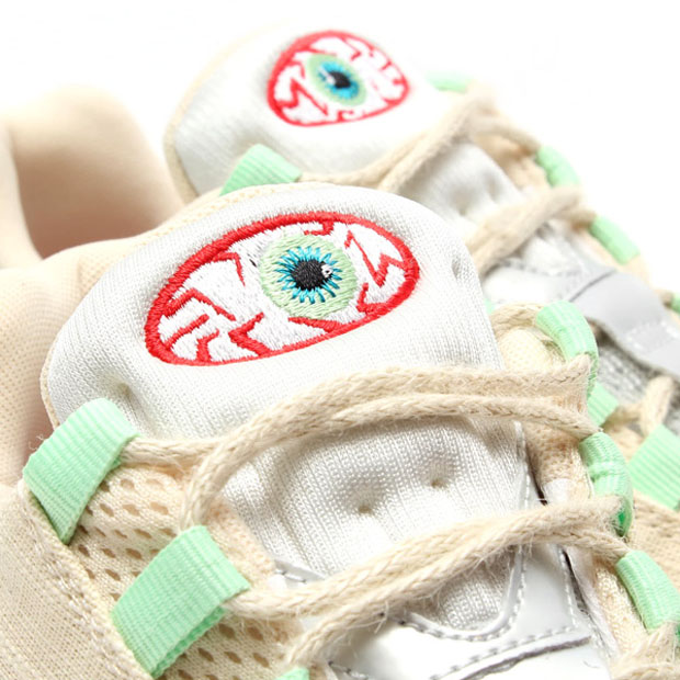 The Nike Air Max 95 QS “Halloween” sneaker features a beige canvas base, a green ‘glow in the dark’ effect and two bloodshot eyes on the tongue. Browse through the gallery below to view more of its features and stay tuned for an official release date.