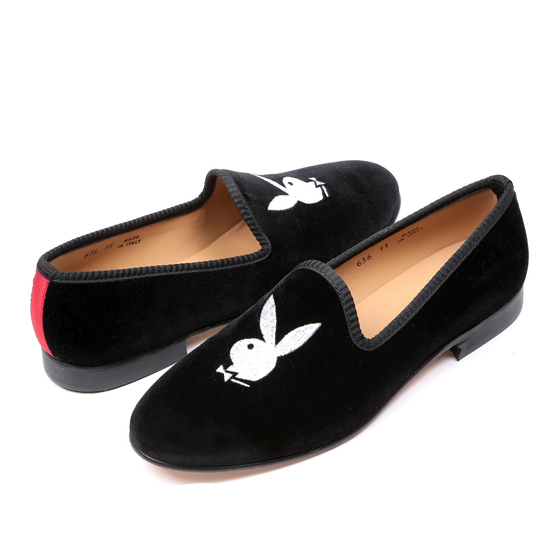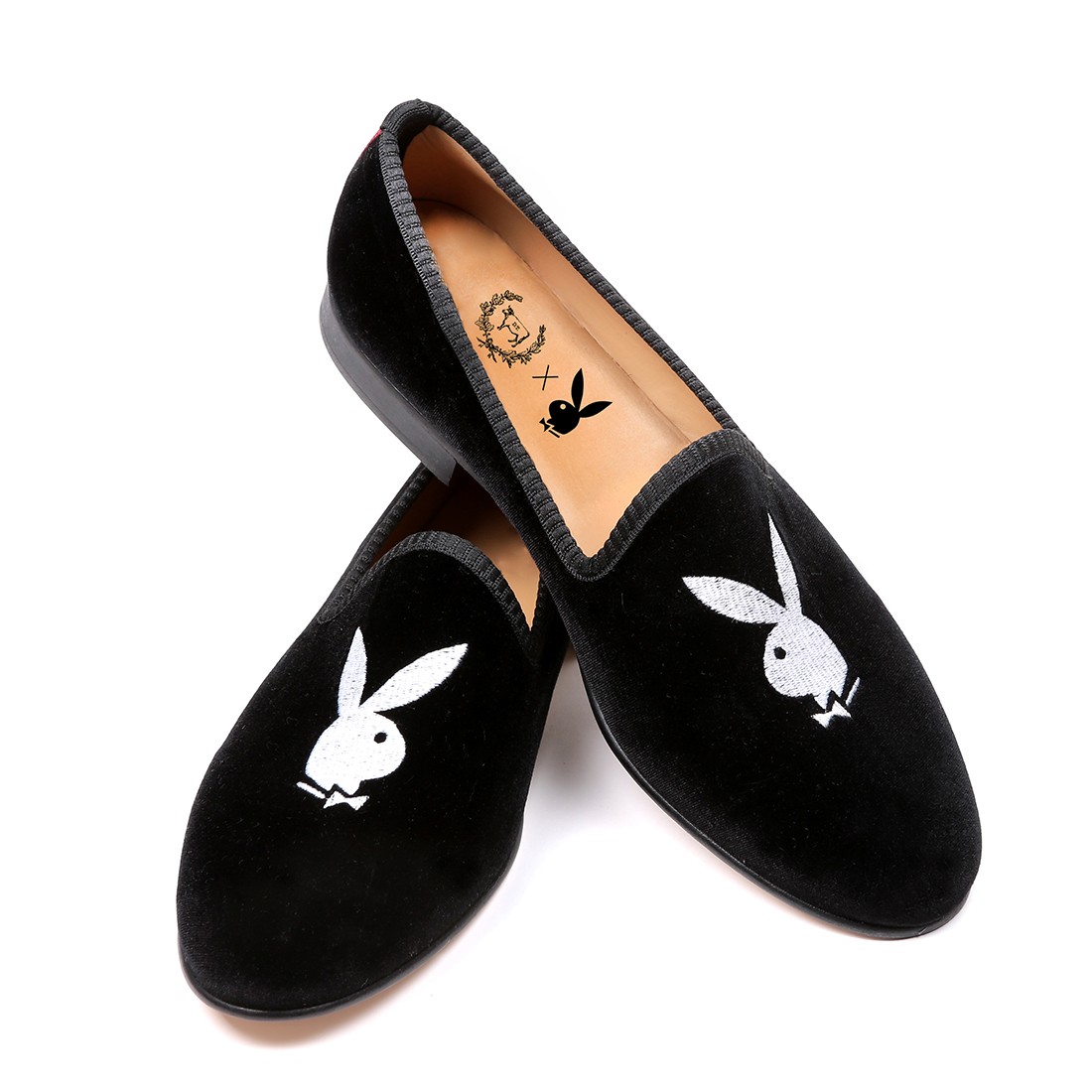 Handmade in Italy, Del Toro and Playboy’s limited edition collaborative mens slipper features black velvet with the Playboy rabbit head embroidered, black grosgrain trim, a black wooden stacked heel, their signature red grosgrain heel stripe and leather lining. Get your pair now via the brand’s website.