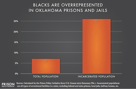 Oklahoma as recently as 2012 was ranked in top five in the entire country for prison population, and guess what group of people made up the majority of inmates…