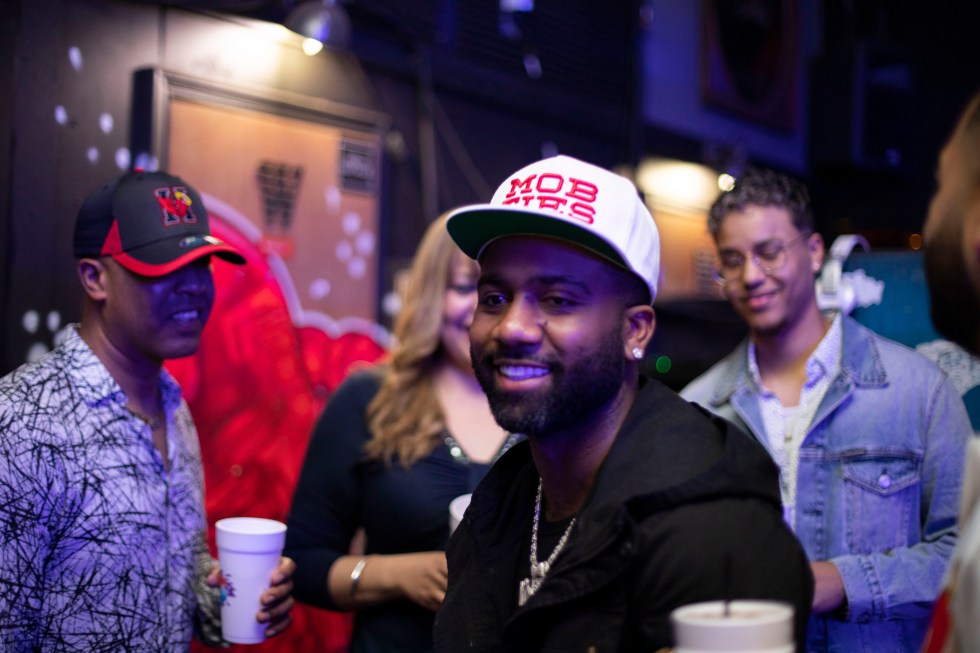 The listening party for Heartbreak University took place at one of the dopest dive bars in the city; Satellite Bar (located near East Downtown Houston). From the moment you walked into the bar one could feel the ambiance and aura was nothing short of special; good energy. A series of sponsors (Jameson, Exotic Pop, Slapwoods and more) provided amenities and good vibes throughout the night. The crowd of guests and listeners also provided great vibes as people drank and caught up with one another, all awhile eagerly waiting to hear Mosa’s snippets of his highly anticipated project Heartbreak University.
