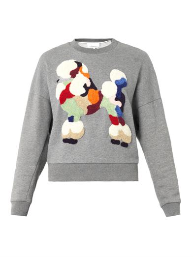Shop 3.1 Phillip Lim’s grey marl sweatshirt, cut from soft French terry and playfully decorated with a patchwork embroidered poodle here.
