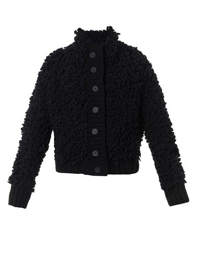 Maison Martin Margiela MM6’s textured-knit cardigan is an oversized style, knitted from textured wool-blend with contrasting ribbed detailing inspired by the classic bomber. Shop the cardigan here.